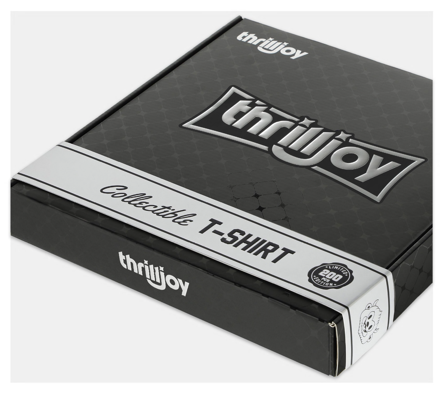 Thrilljoy Threads embraces bold streetwear trends, offering premium gear for fans. Our ultra-limited edition drops, each stamped with our signature wax seal and edition number, turn every piece into a collectible flex. This Thrilljoy-branded t-shirt is hyper limited (capped at 200 pieces!), and comes in a premium box- enhancing its collectability.