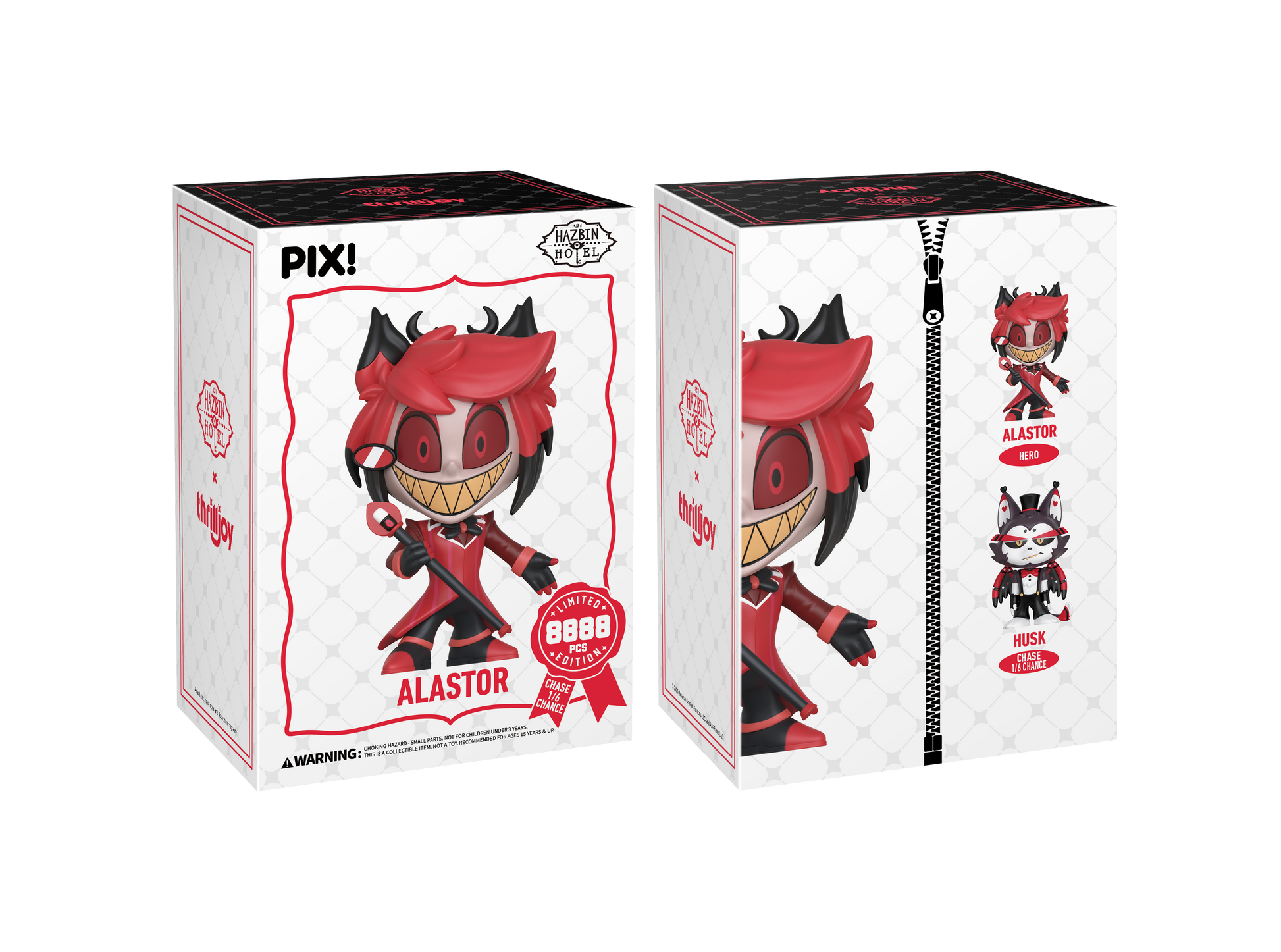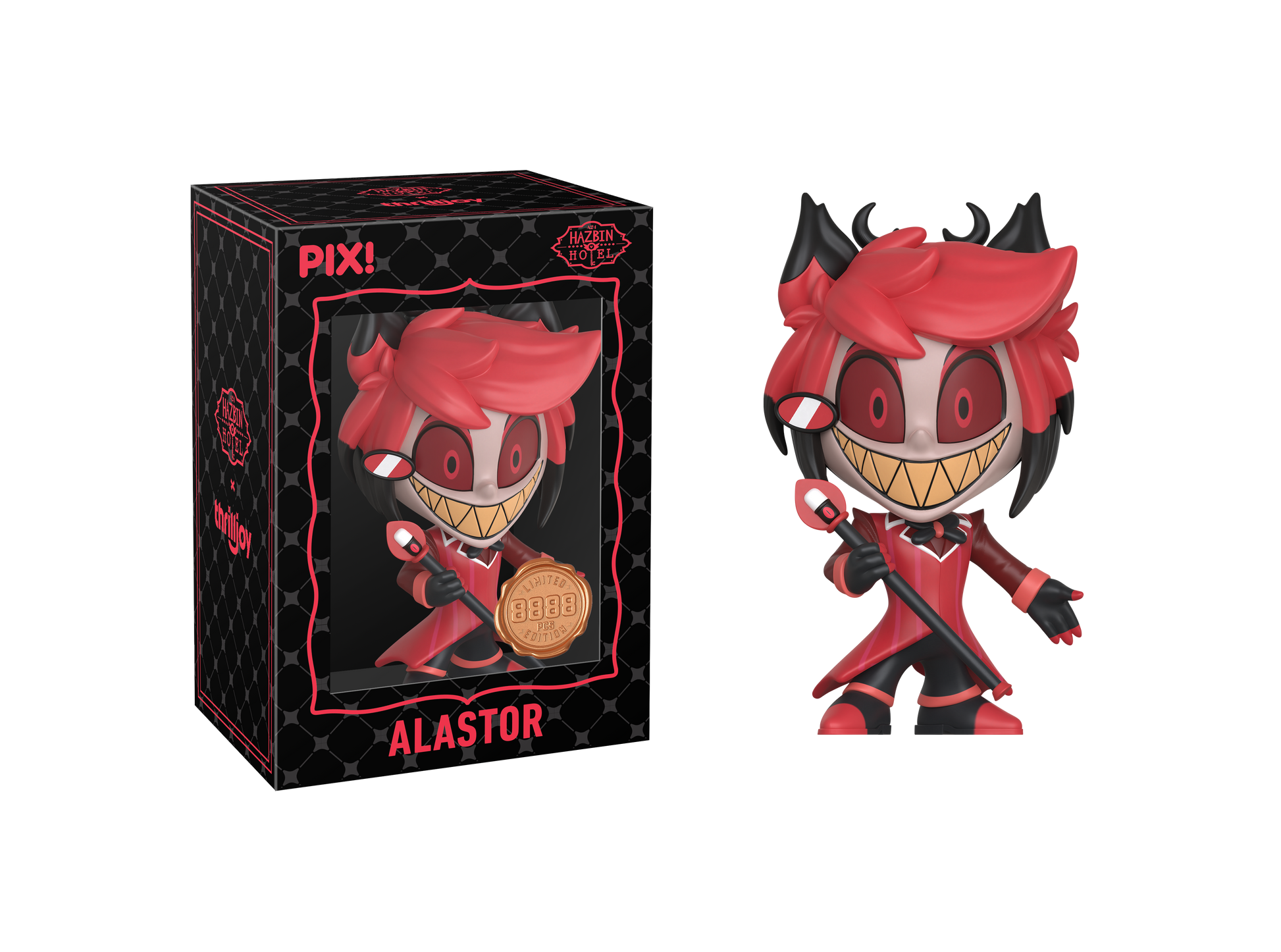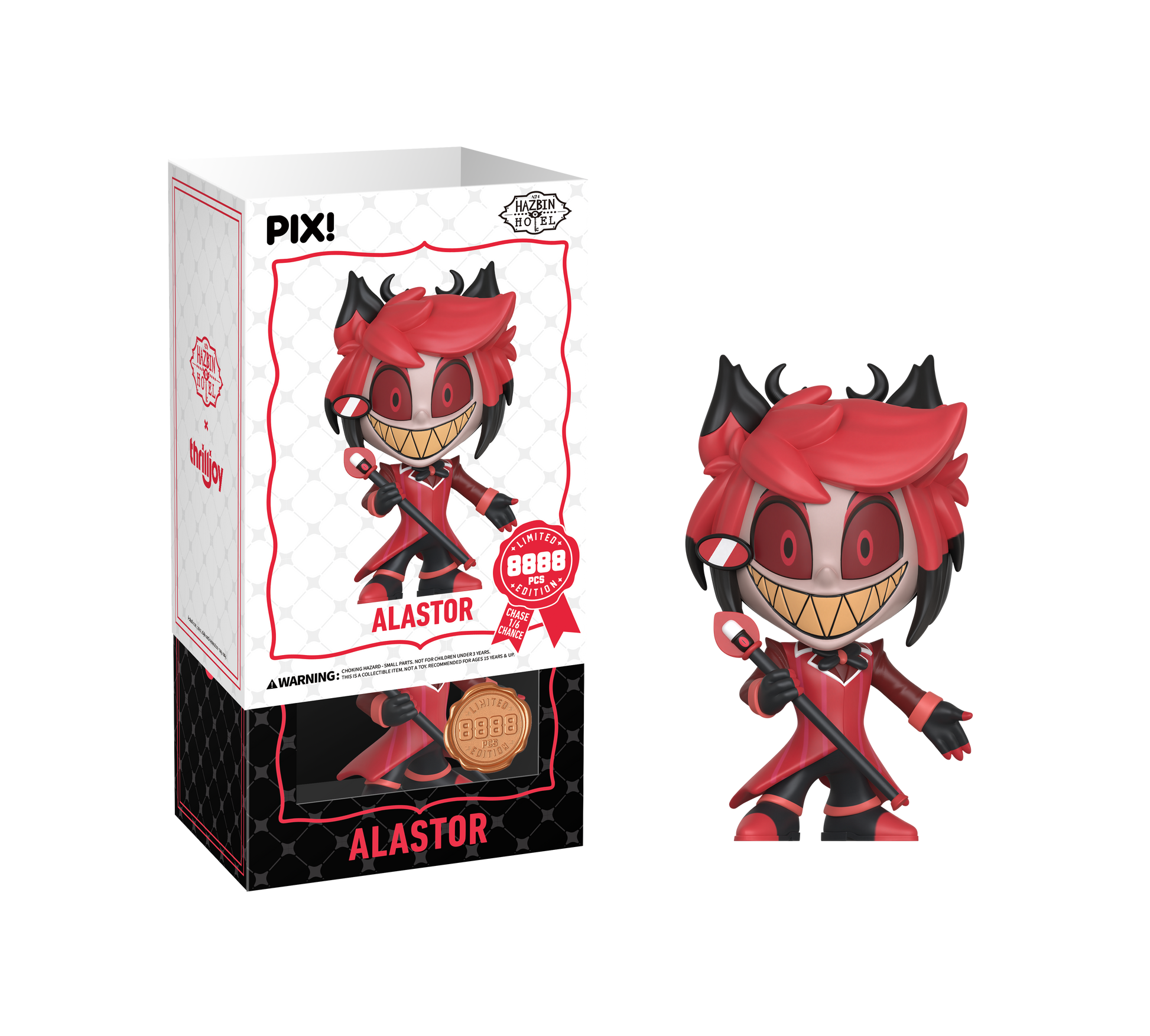 Smile, my dear! You know you’re never fully dressed without one! Featuring Alastor in his red and black suit, razor-sharp grin, and glowing red eyes, this Radio Demon is ready to claw his way straight from Hell right onto your shelves.