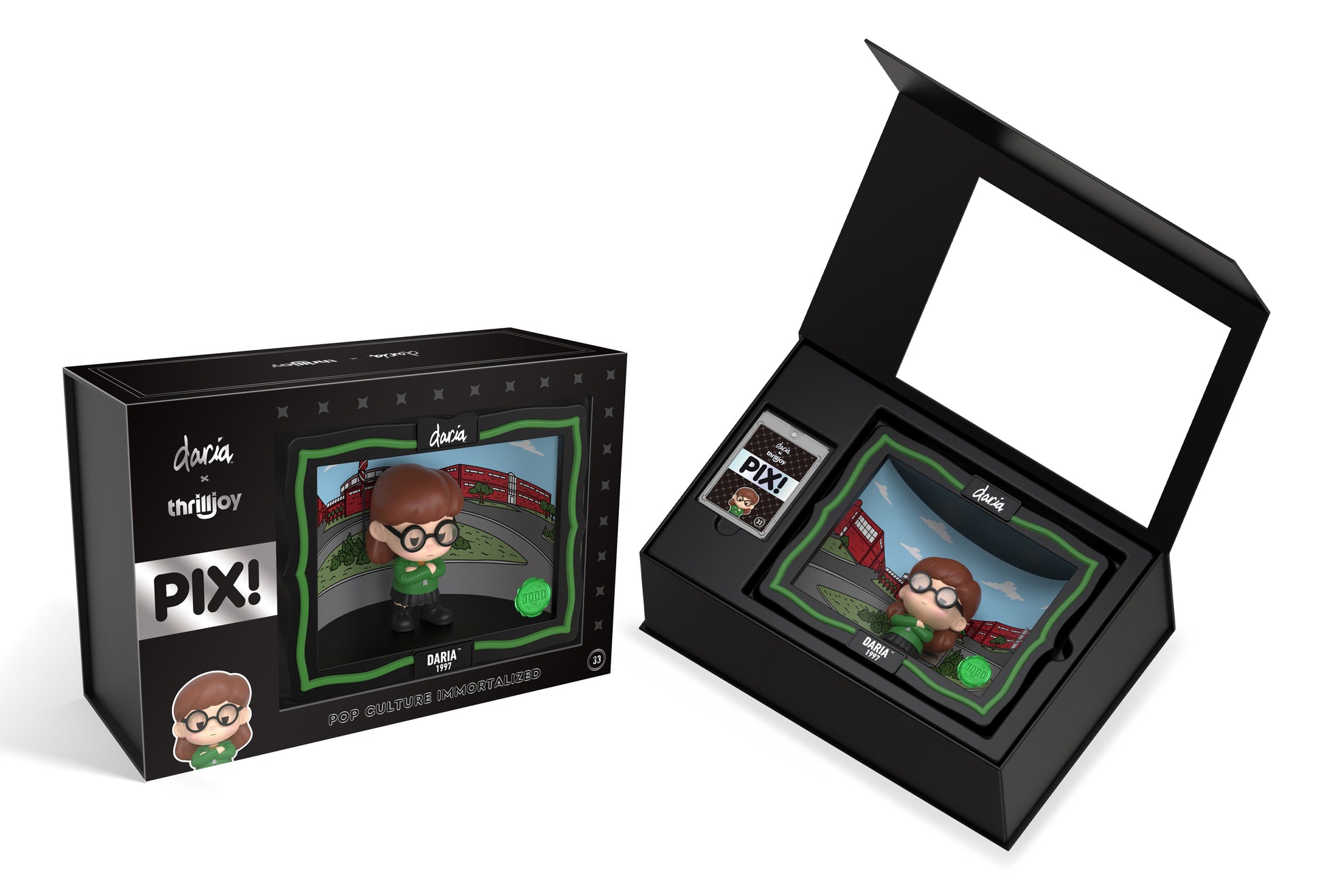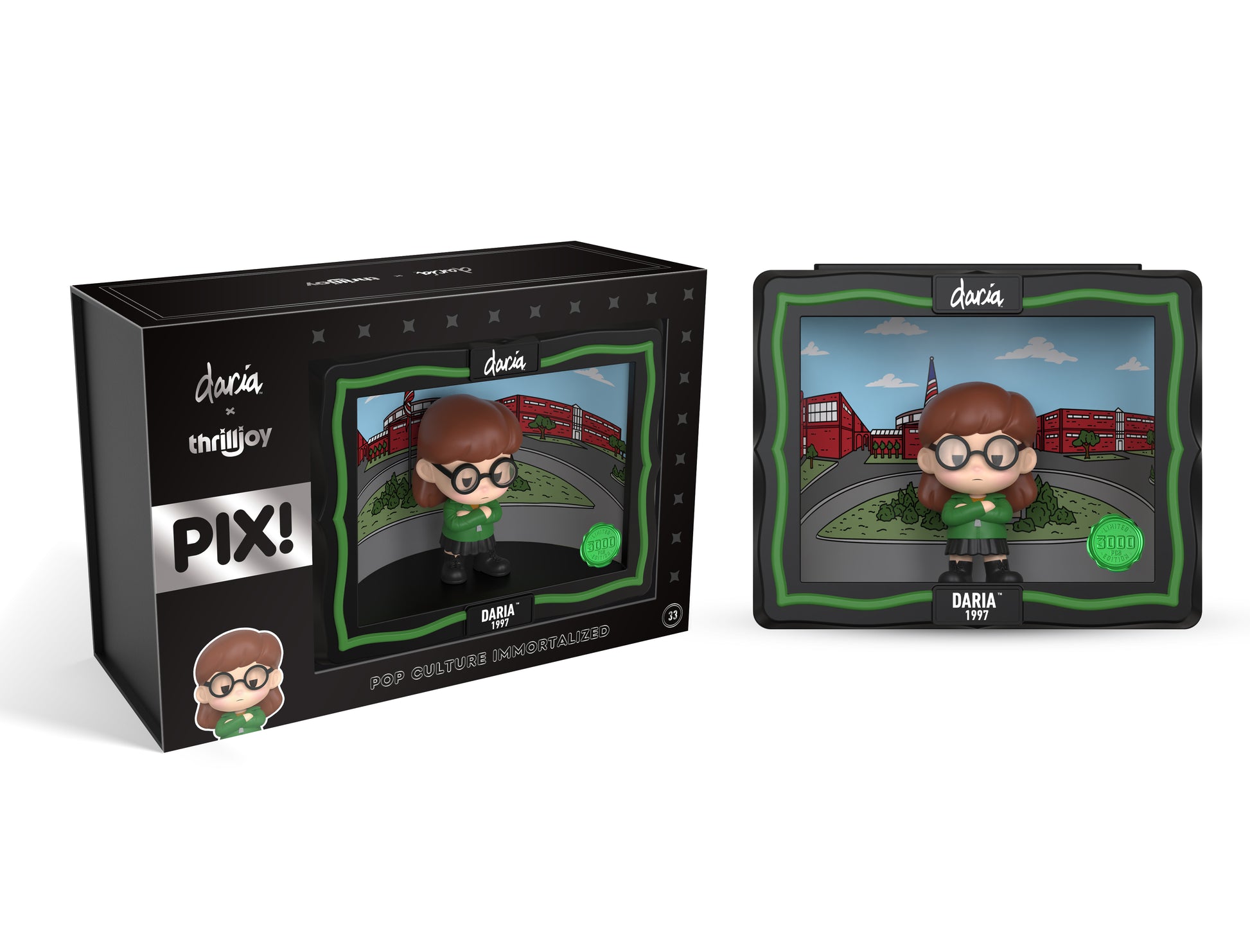 I’m not being sarcastic—Daria is really here! Featuring Daria standing in front Lawndale High, wearing her famous green sweater and the iconic deadpan expression in her eyes. This Daria PIX! Is the perfect addition to anyone wanting to add some wit to their collection.