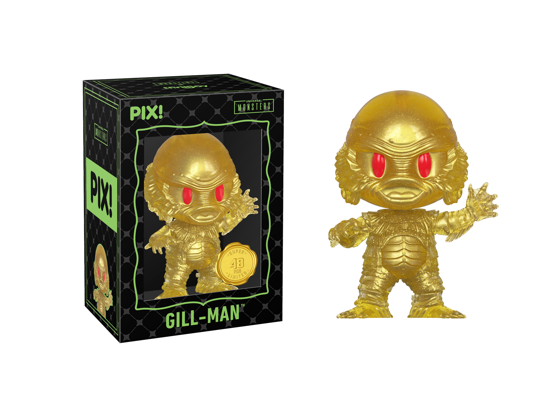 Gill-man has emerged from the depths! Featuring his scaley green skin, eerie black