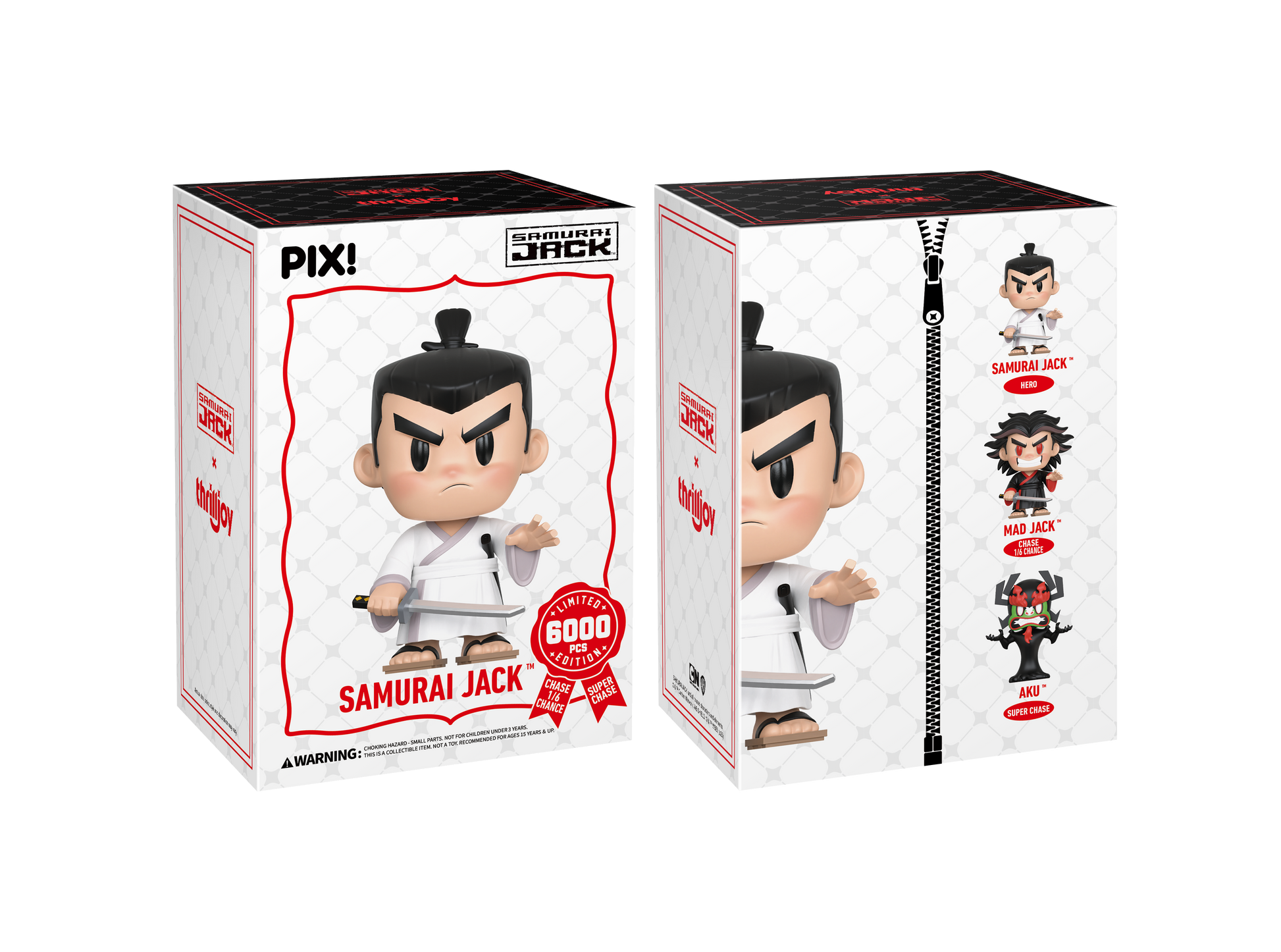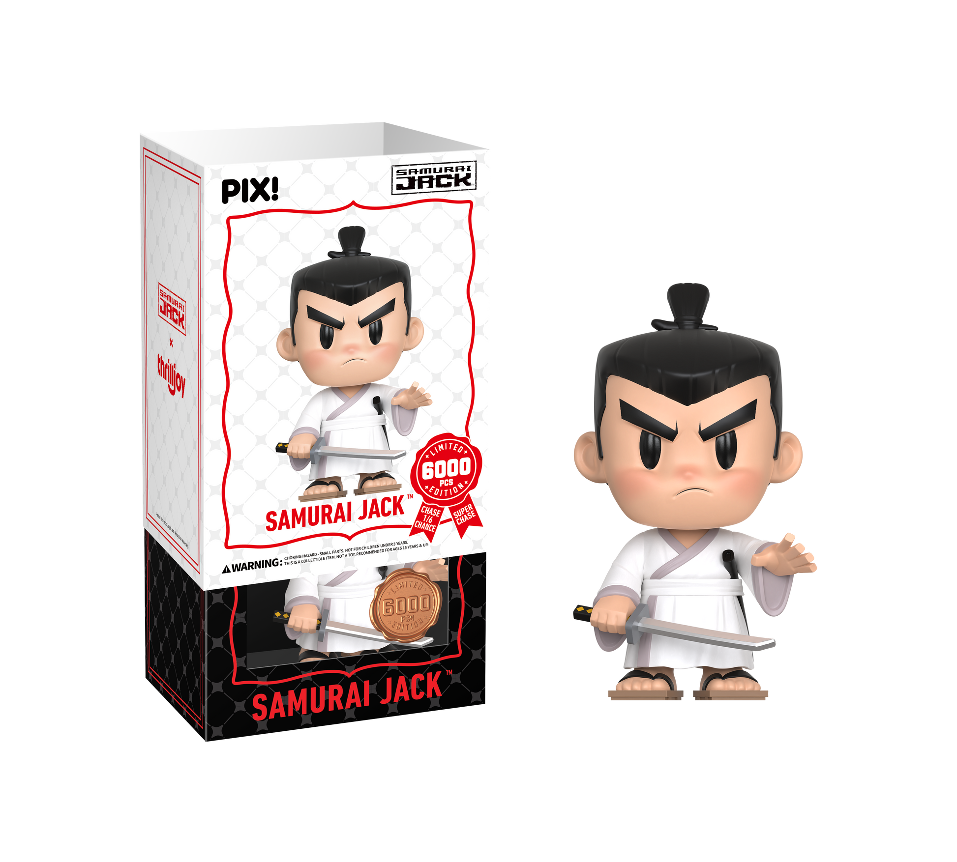 All Samurai Jack PIX! comes with a Certificate of Authenticity in the form of a laser printed, spot varnished collector’s card, and are ready to stack with the rest of your collection. Each collectible has a 1-of-6 odds of a chase!