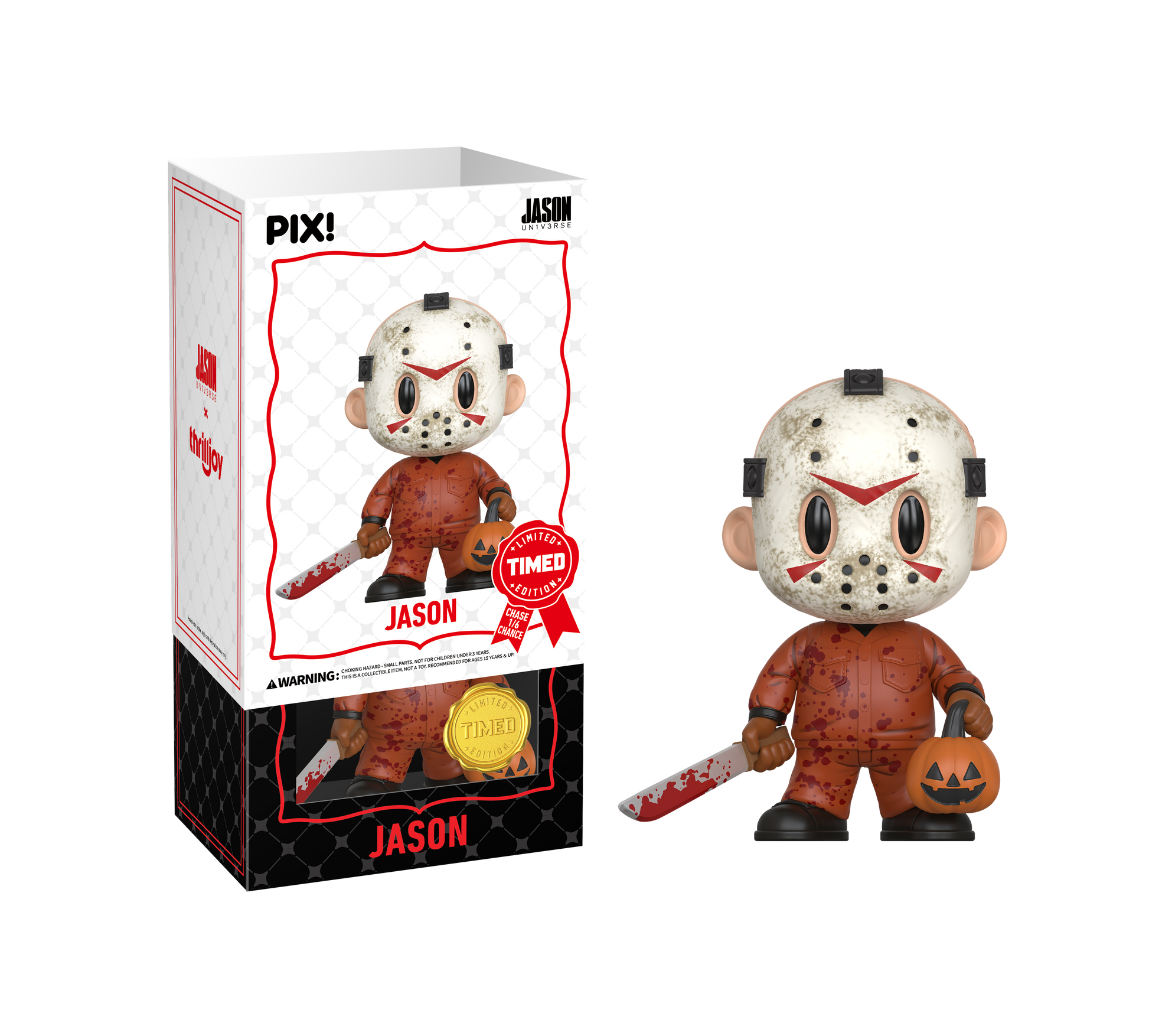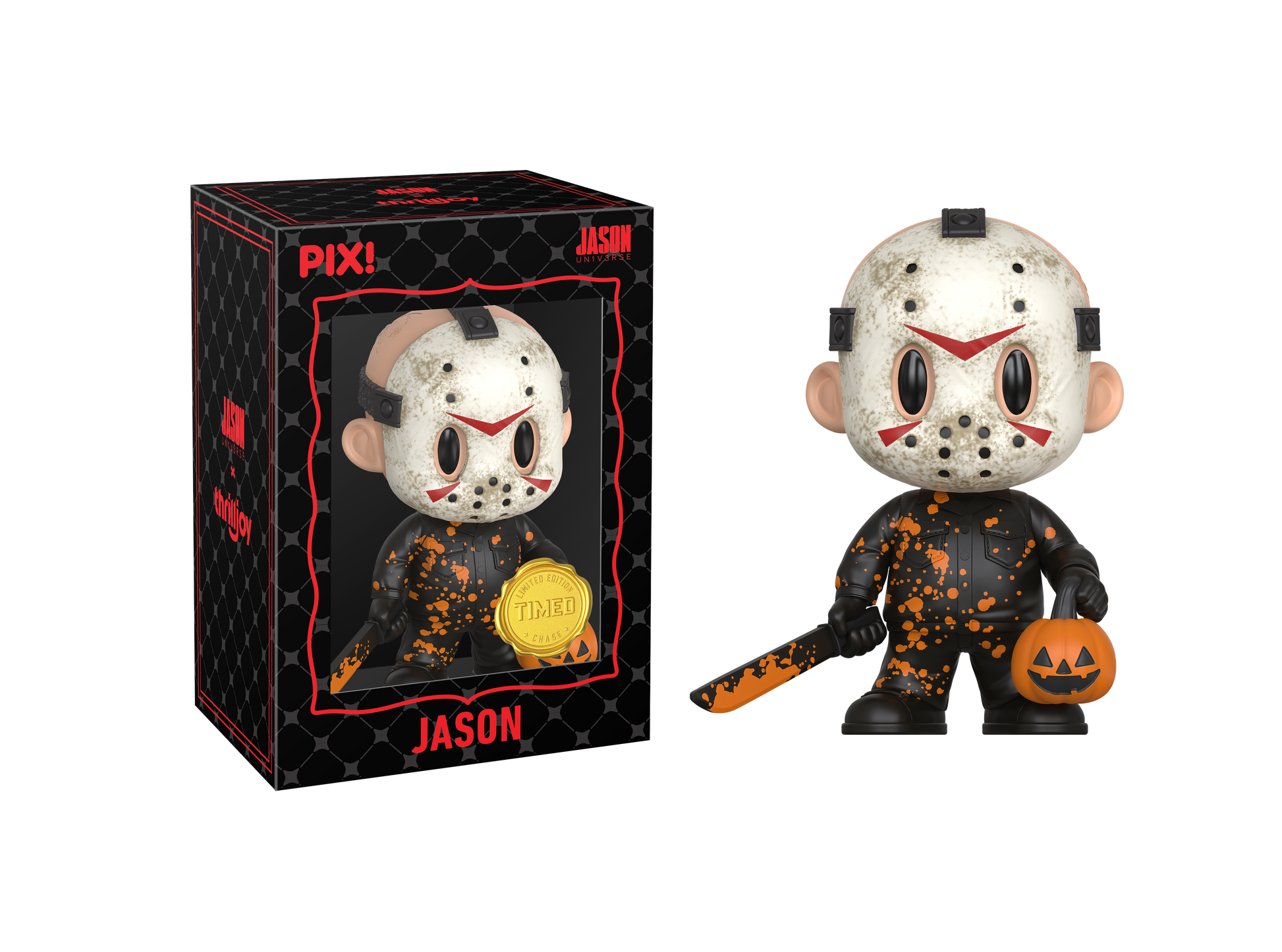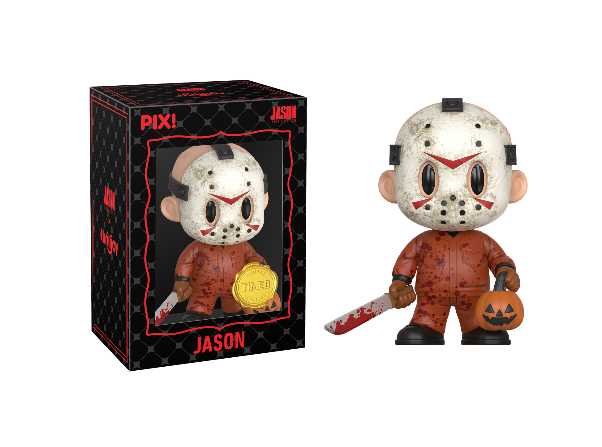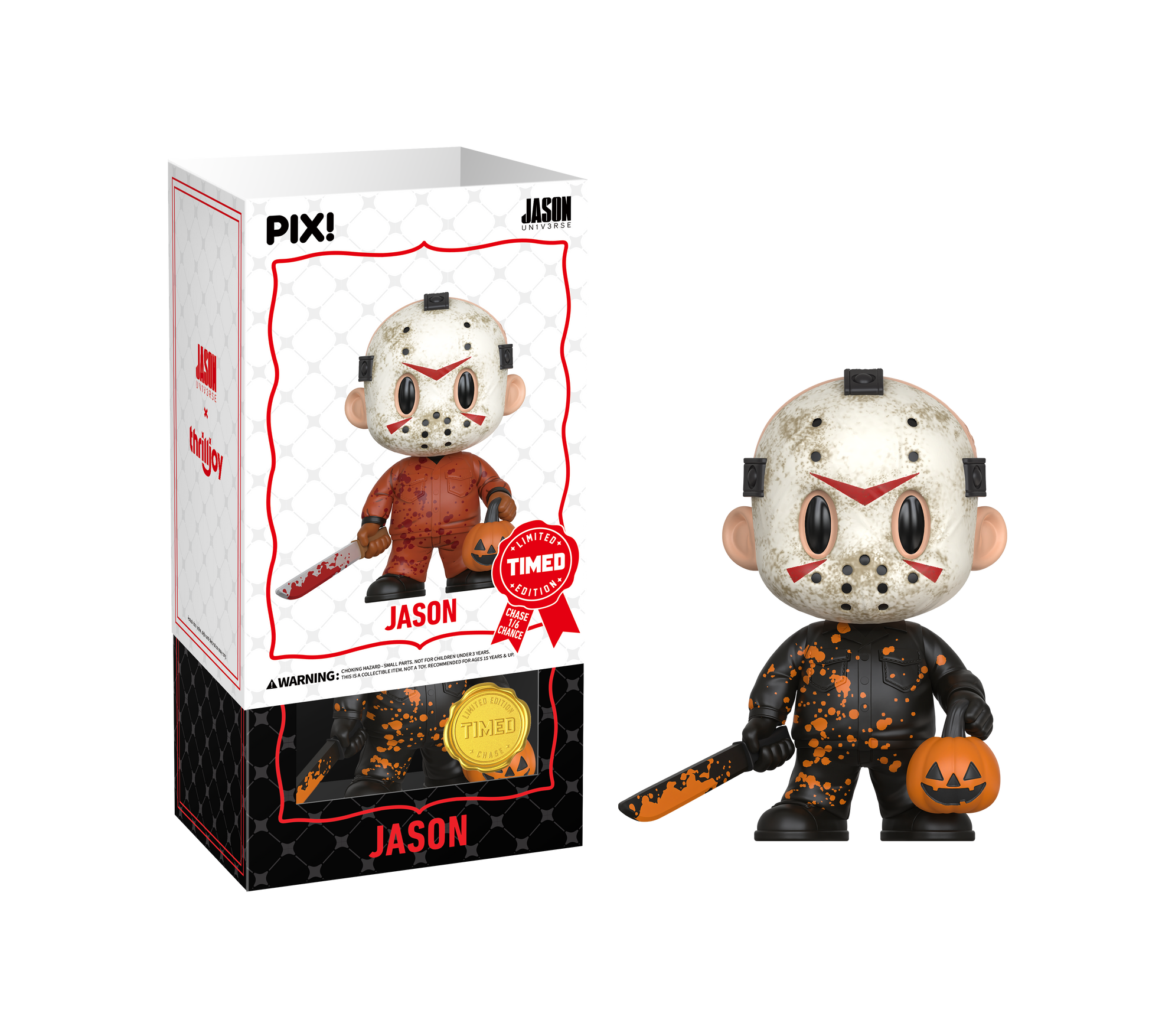 Trick or treat! Featuring Jason in his terrifying hockey mask and blood-splattered orange jumpsuit, holding his signature machete in one hand and a jack-o’-lantern in the other! Jason is going house to house hunting for a killer treat this Halloween! This PIX! is perfect for all fans of horror!