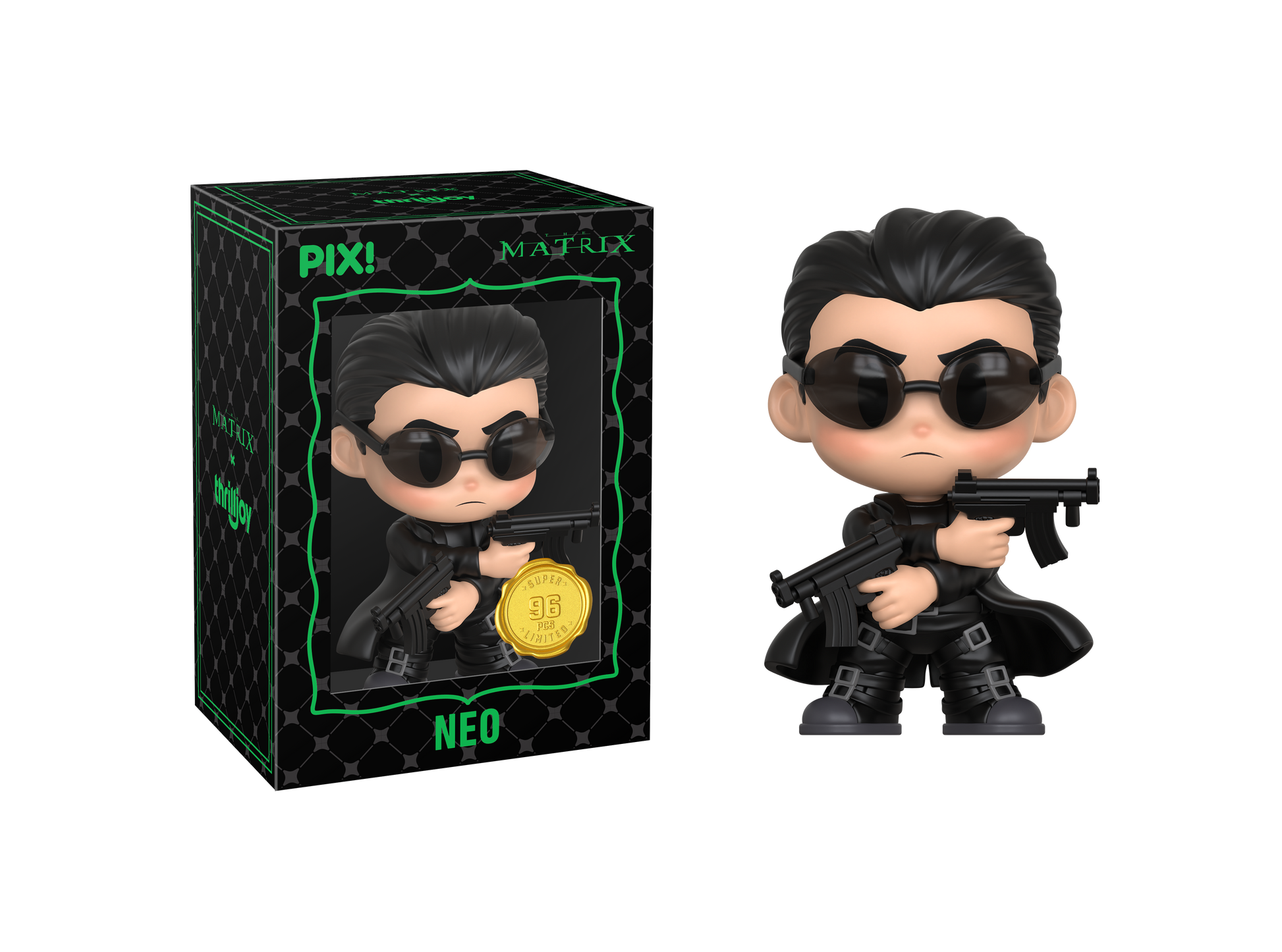 This guy knows his kung fu! Featuring Neo with his slicked-back black hair, thick eyebrows, sunglasses and long leather coat, ready to fight anyone who gets in his way! Neo is heading straight to your shelves! This PIX! is perfect for all fans who love cult classics!