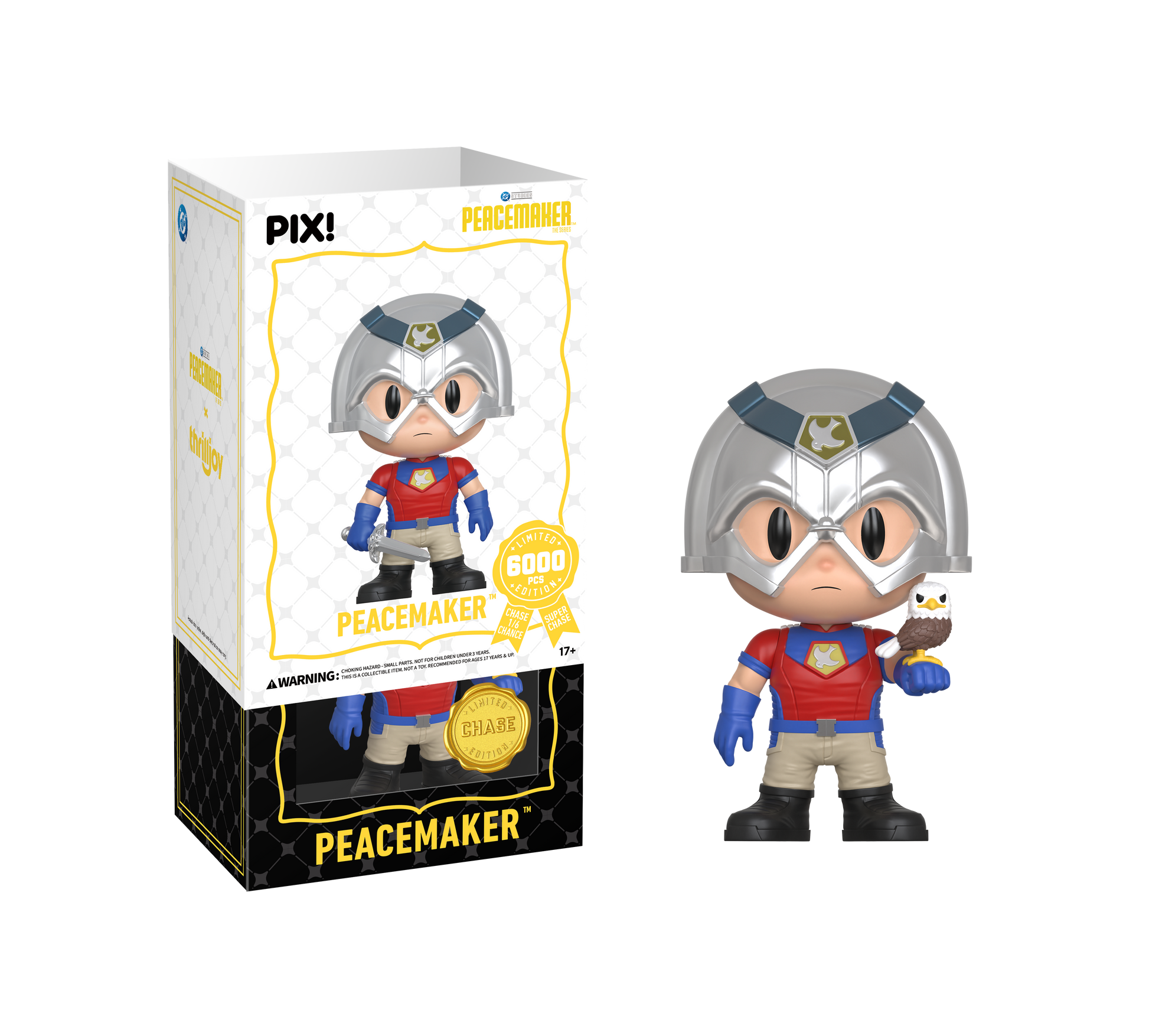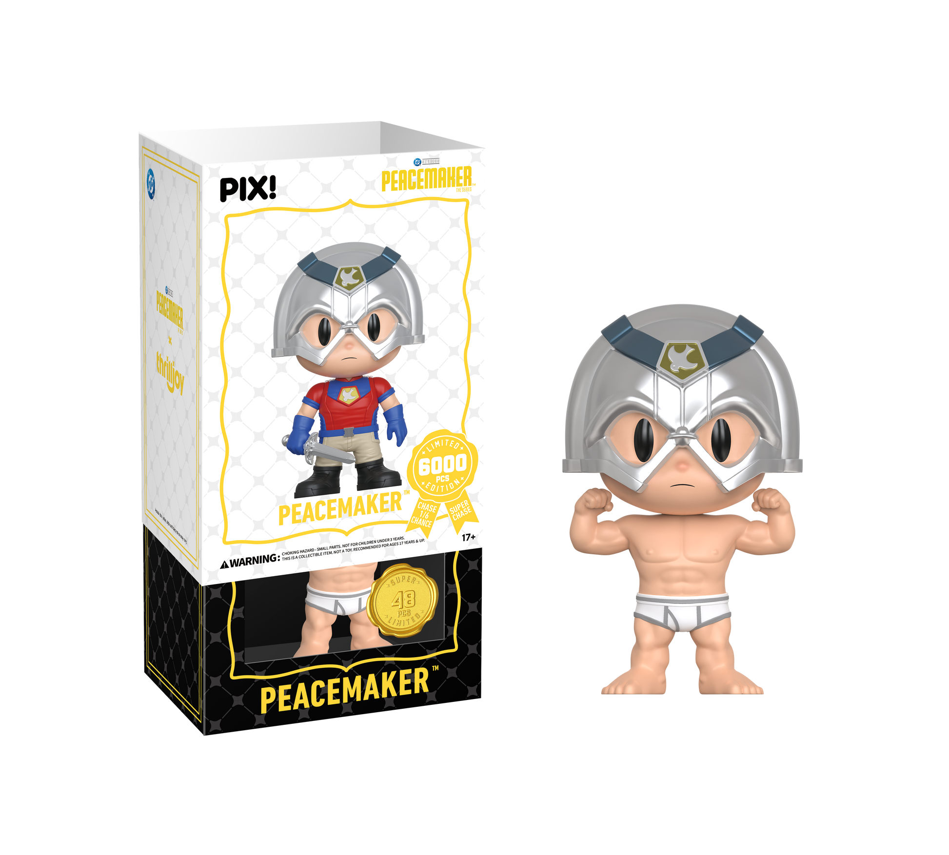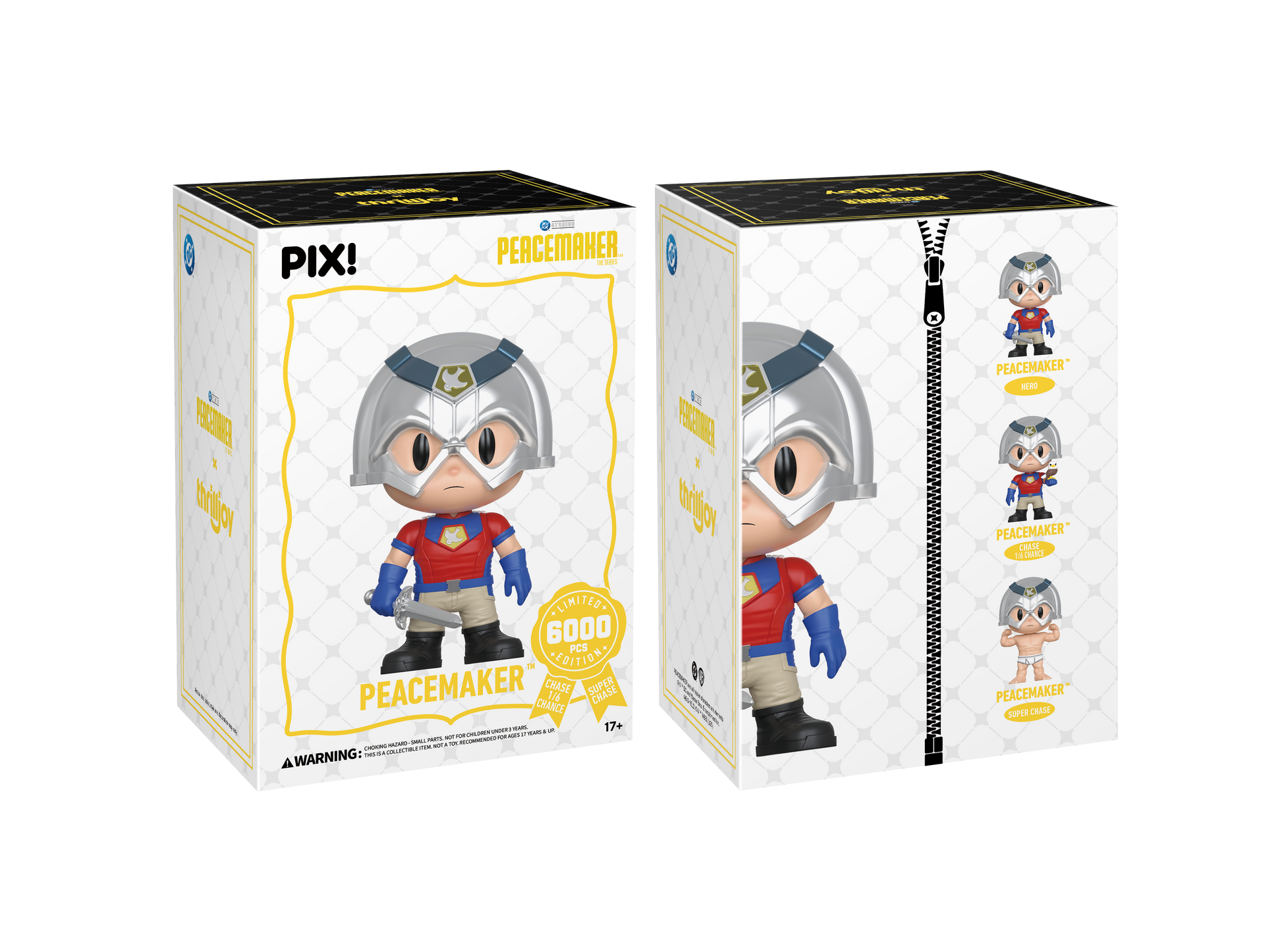 All Peacemaker PIX! comes with a Certificate of Authenticity in the form of a laser printed, spot varnished collector’s card, and are ready to stack with the rest of your collection. Each collectible has a 1-of-6 odds of a chase!