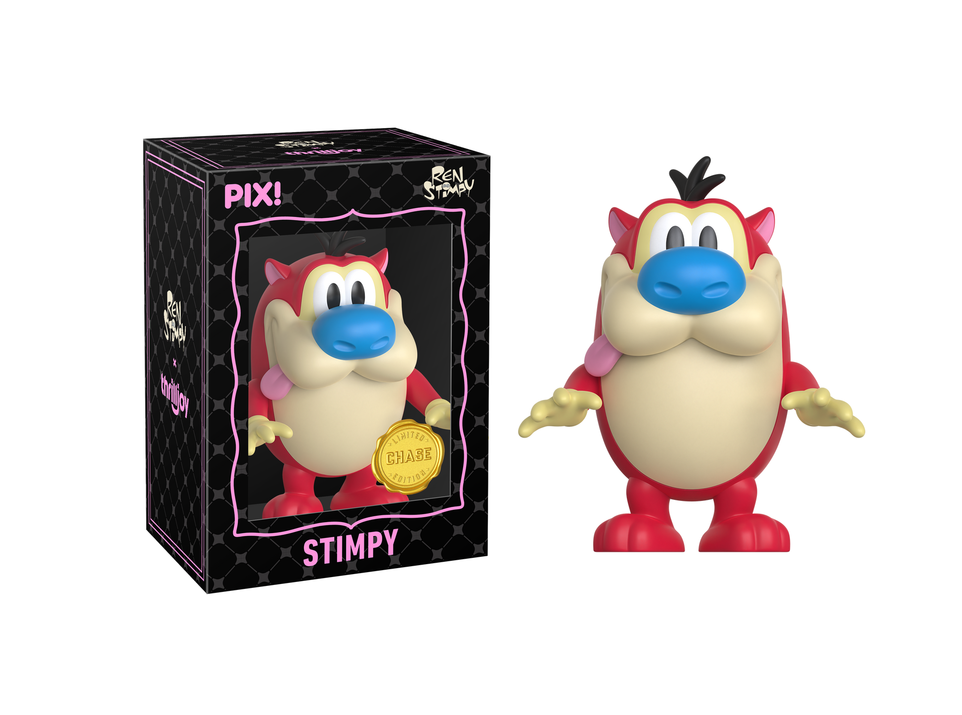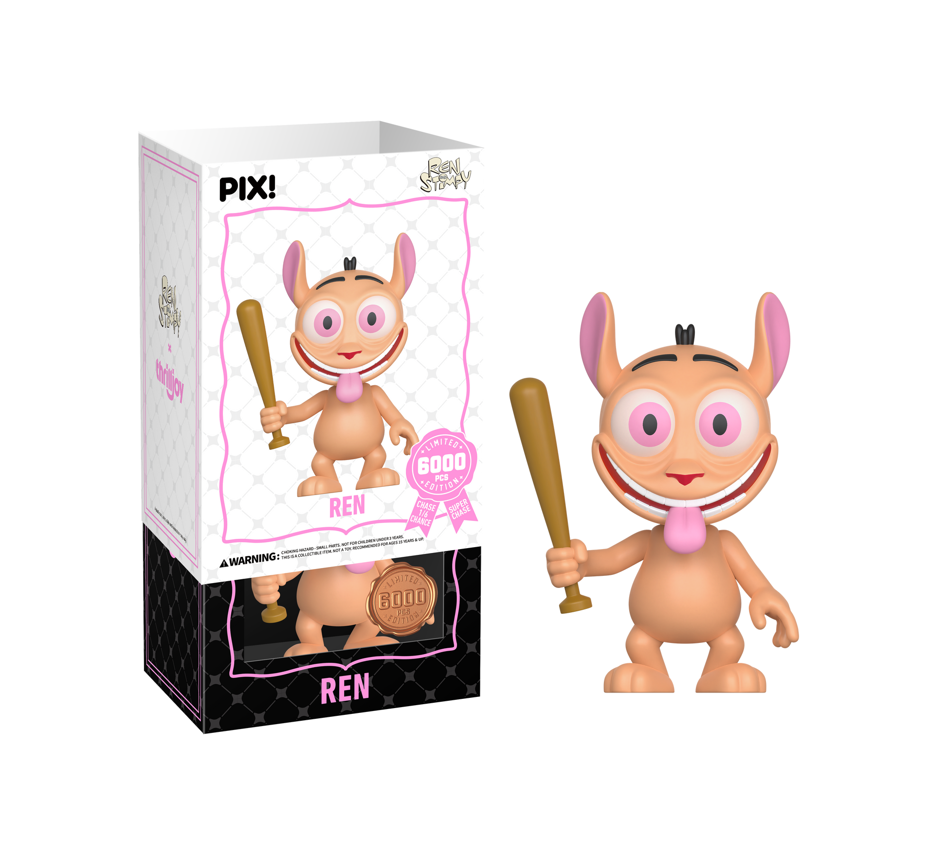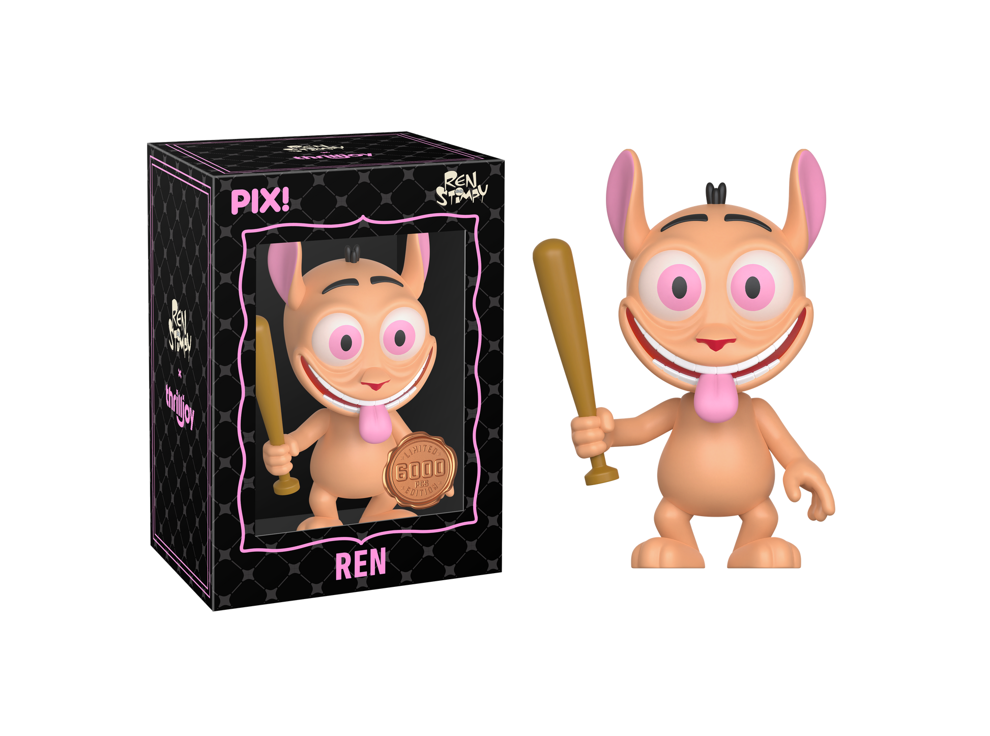Happy, happy, joy, joy! Featuring Ren with his caramel-colored fur, round head, oversized eyes, ears sticking straight up, and a bat in hand! Ren is heading straight to your shelves! This PIX! is perfect for all fans of ‘90s Nickelodeon cartoons!