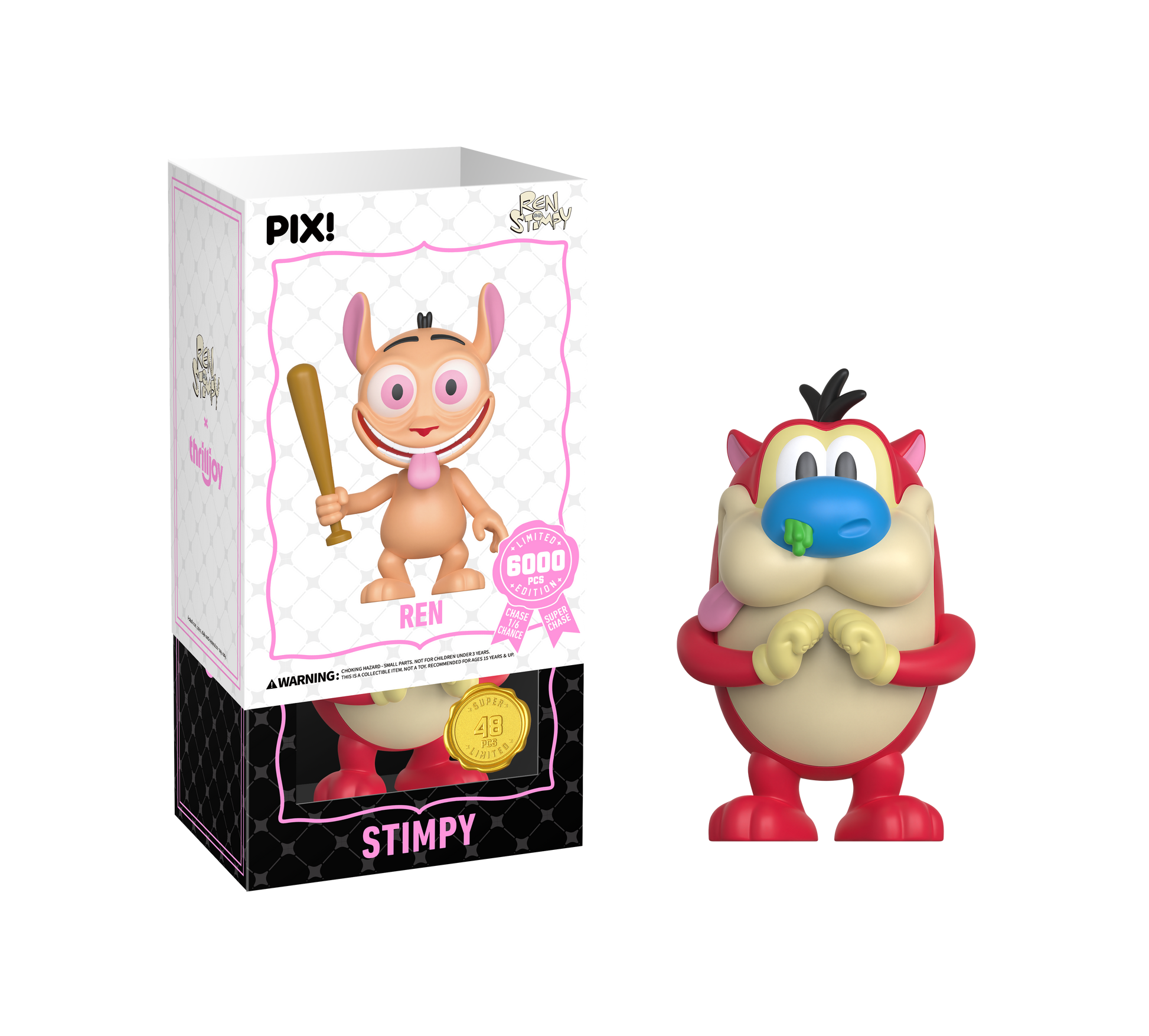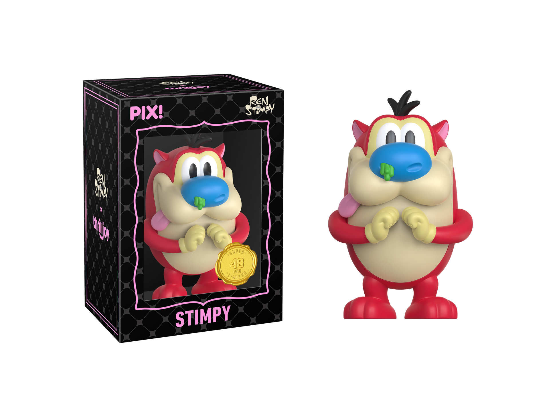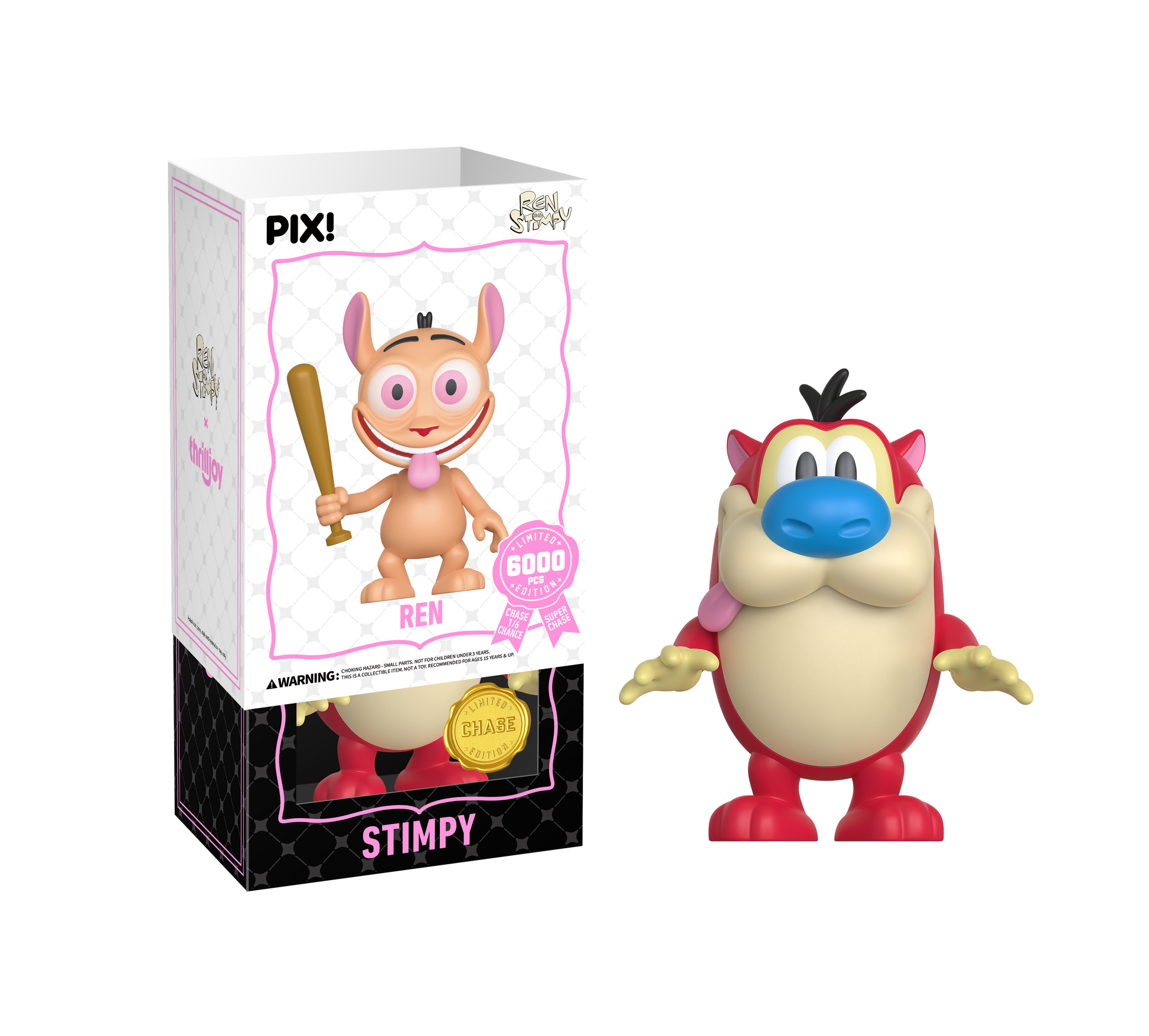 Happy, happy, joy, joy! Featuring Ren with his caramel-colored fur, round head, oversized eyes, ears sticking straight up, and a bat in hand! Ren is heading straight to your shelves! This PIX! is perfect for all fans of ‘90s Nickelodeon cartoons!