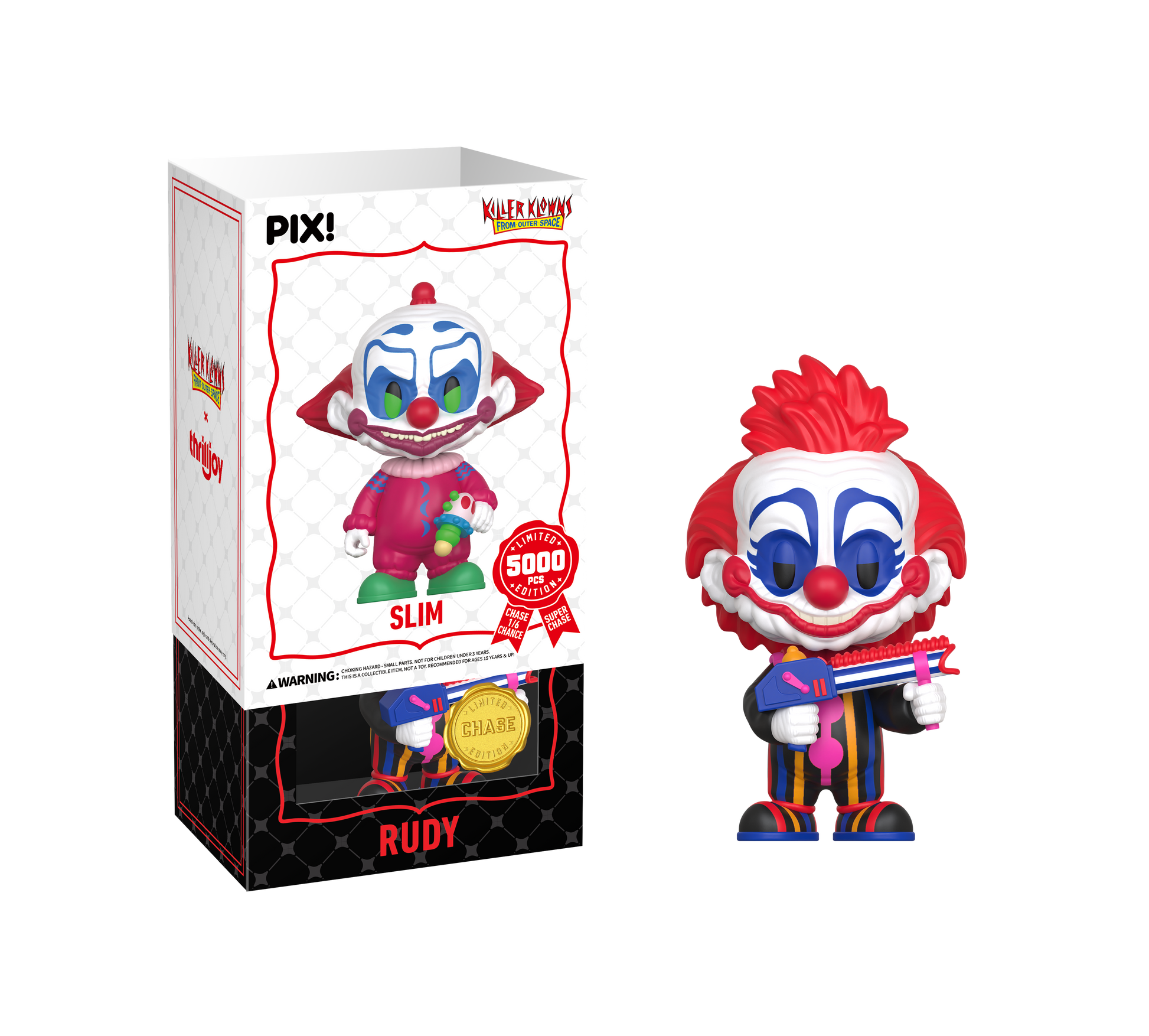 All Killer Klowns from Outer Space PIX! comes with a Certificate of Authenticity in the form of a laser printed, spot varnished collector’s card, and are ready to stack with the rest of your collection. Each collectible has a 1-of-6 odds of a chase!
