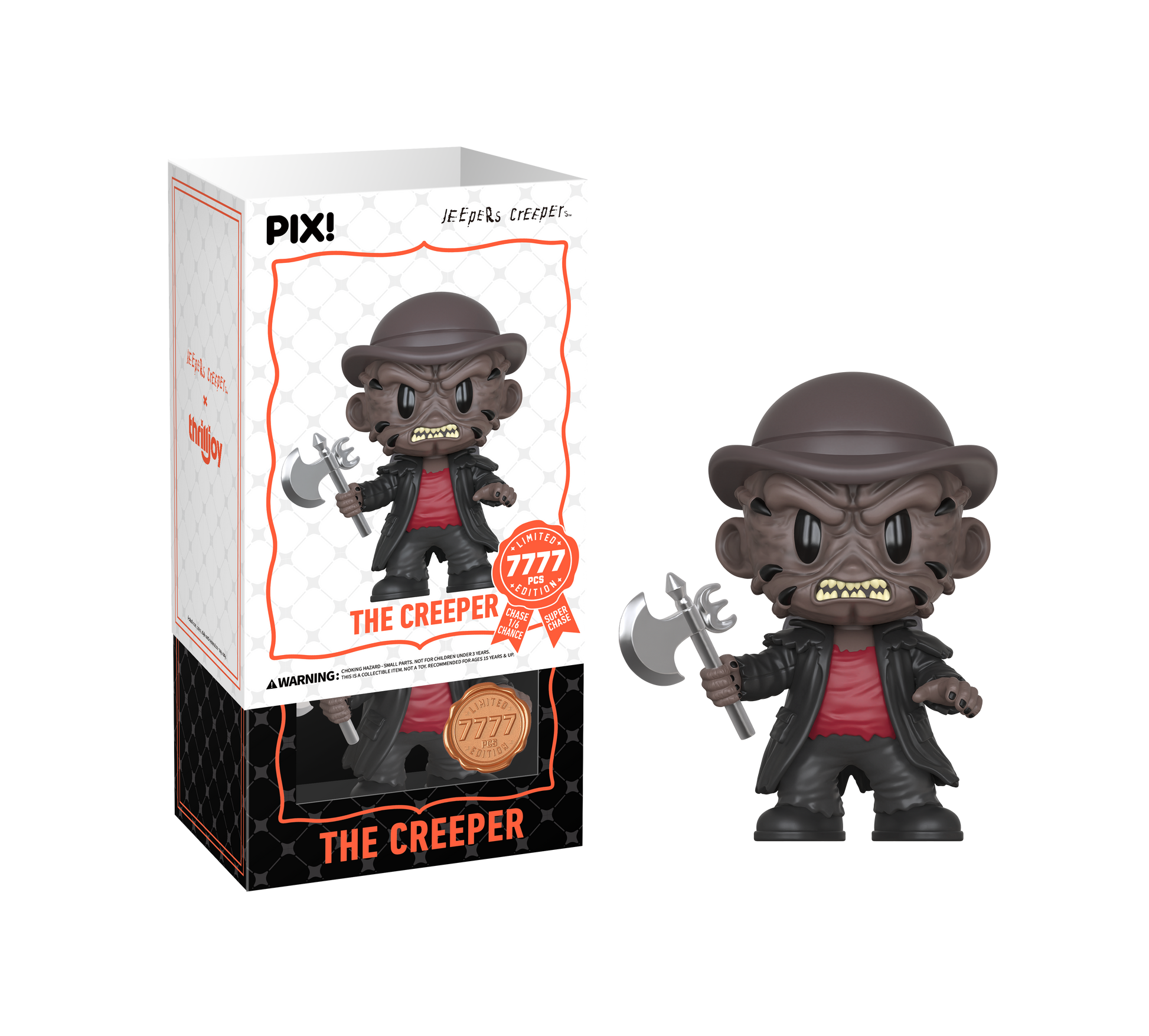 This PIX! is creepin’ your way! Featuring The Creeper with his leathery skin, rugged red shirt, long trench coat, and signature hat, holding his iconic battle axe! The Creeper is killing straight to your shelves! This PIX! is perfect for fans who love Horror films!